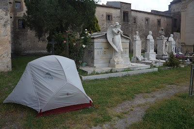 Indien je op zoek bent naar een graf 'with a view' this is the place to be. Daarna besluit ik af te buigen naar Syracuse want sinds mijn tablet het begeven heeft zit ik zonder detail kaarten en langs een kalme weg ergens geraken is geen evidentie, bijna alle kleine landwegen zijn afgesloten zodat je er met GPS alleen niet komt. De mura dionigiane langs waar ik Syracuse wil bereiken loopt vast in een privédomeinen waar ik op het Castello van Targia bots, nu een wijn boerderij. In Syracuse neem ik de tijd om mijn was te doen en de oude stad te bezoeken. Van hier neem ik een eindje de bus om voorbij de industrie tussen Syracuse en Catania te geraken.